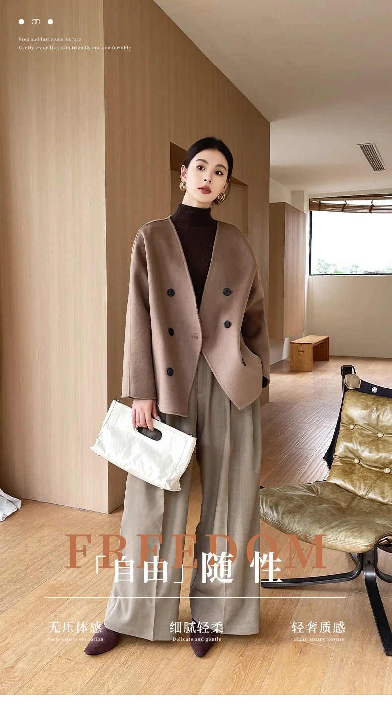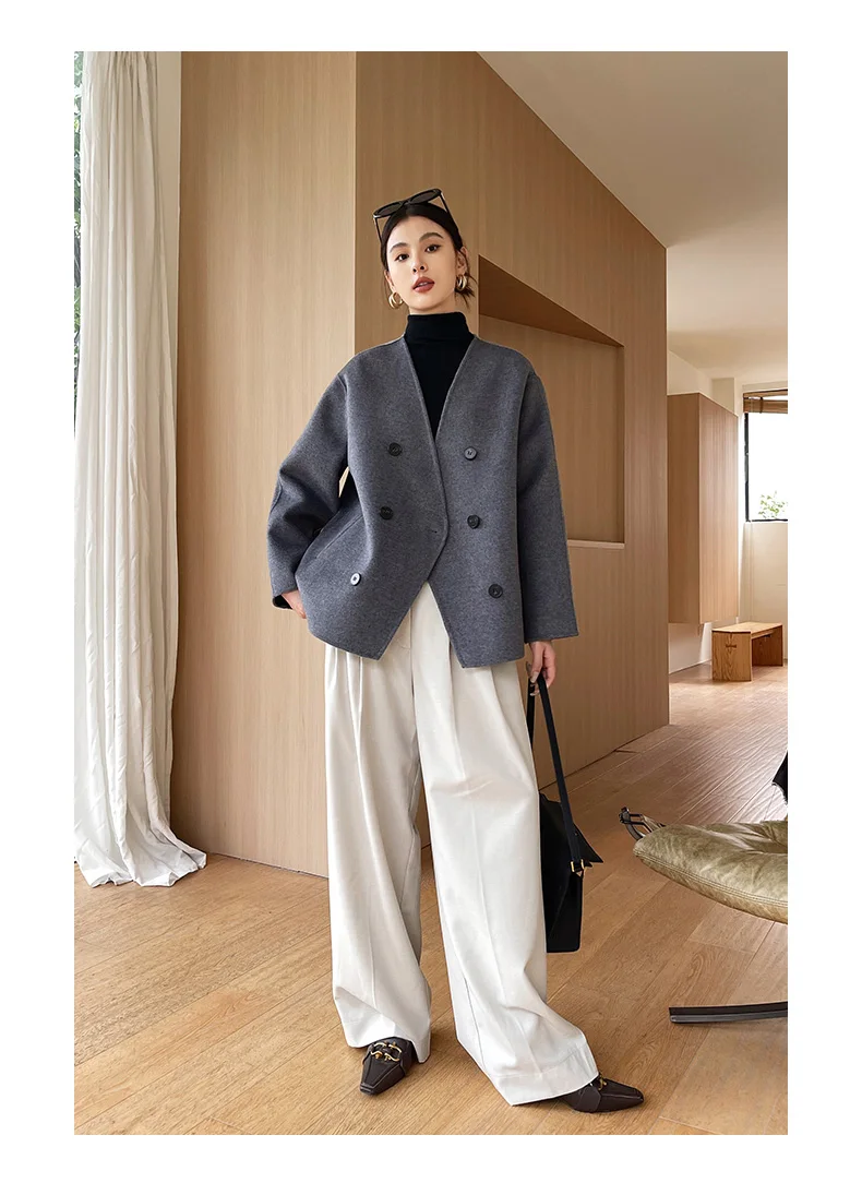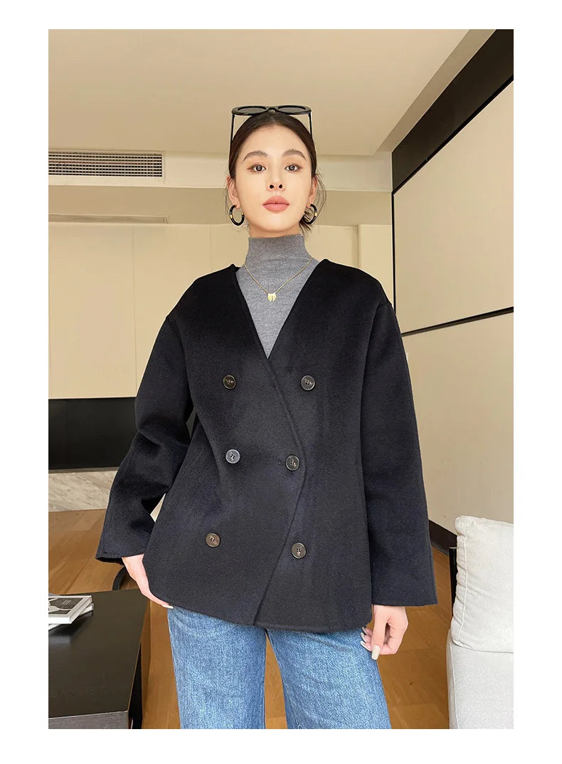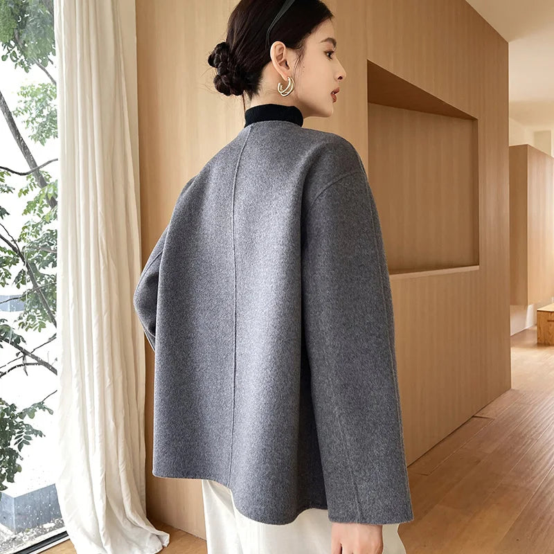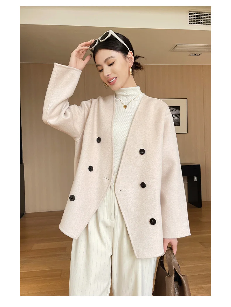 100% women's wool coat, double-sided, warm, high-end, loose, Korean style, short, 2024 autumn and winter new coat