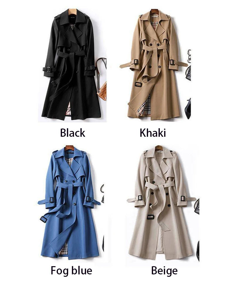 2021 Women Trench Elegant Coat With Belt Autumn Winter Double Breasted Solid Cloak Korean Style Windbreaker Womens Middle Long