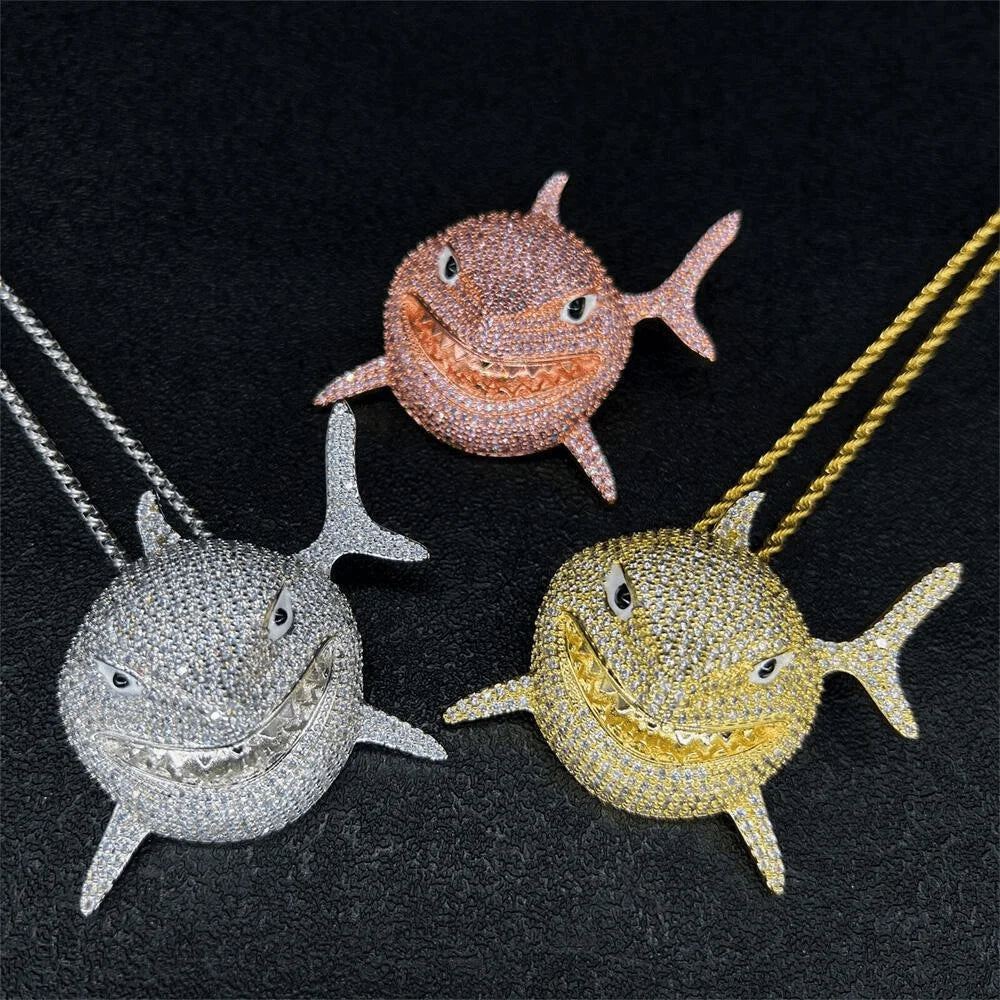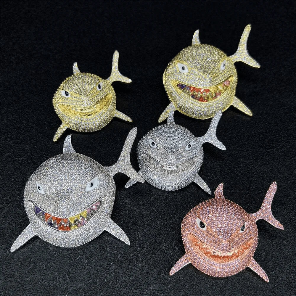 2022 Brand New Rock Hip Hop Cuban Chain Shark Pendant Necklace Iced Out Watch Rhinestone Rapper CZ Bling Men's Jewelry Gi