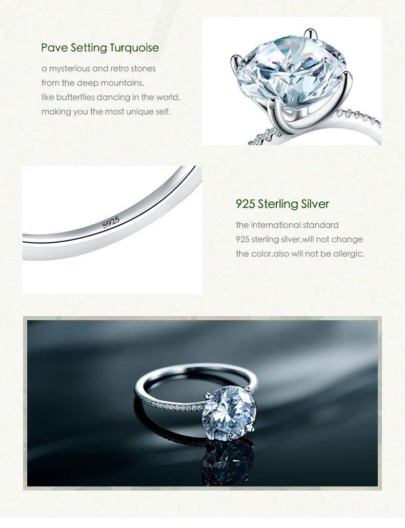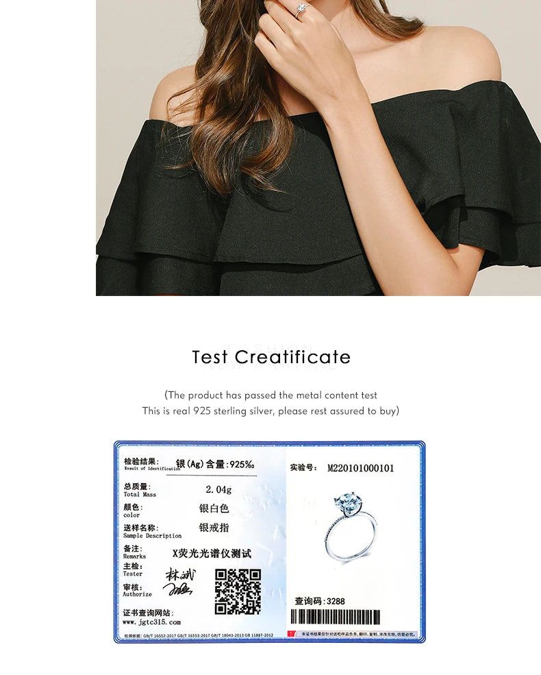 2023 Classic Luxury Real Solid 925 Sterling Silver Ring 3Ct 10 Hearts Arrows Zircon Wedding Jewelry Rings Engagement For Women