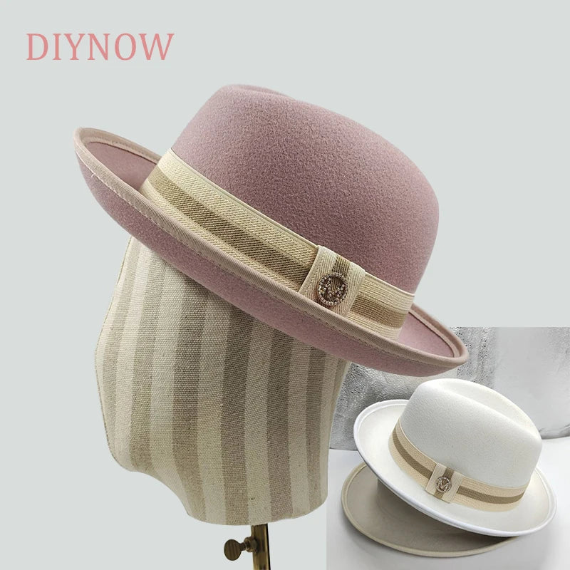 2024 New Fashion Women Men's Fedora Church Roll Up Brim Homburg Jazz Hat Feather Hat Lady Gentleman Gambler Panama Trilby Hat