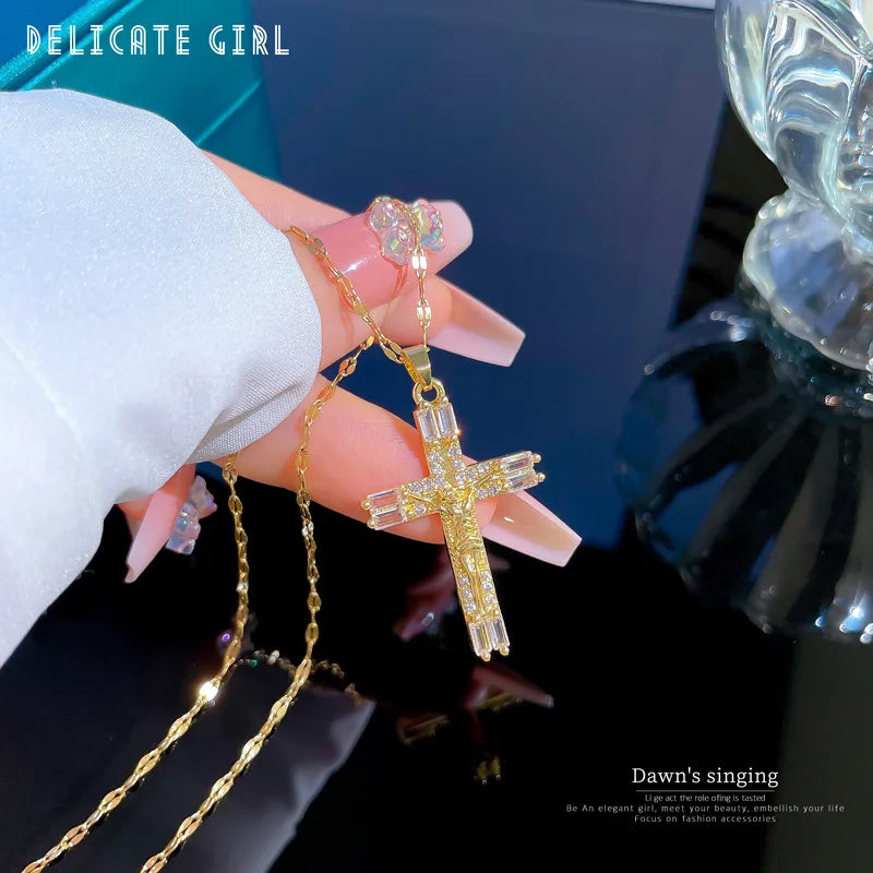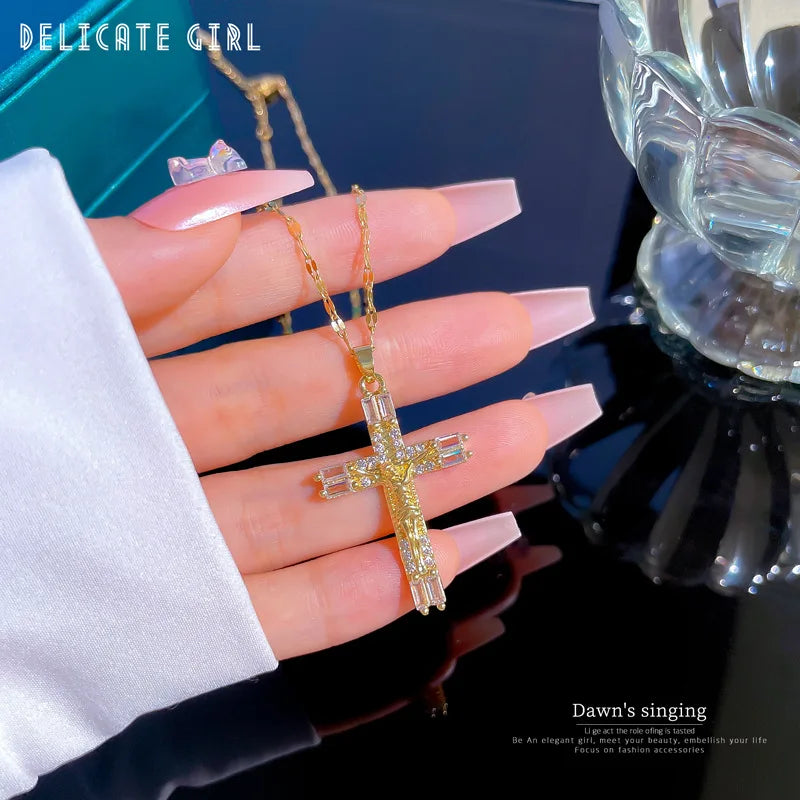 316L Stainless Steel Aesthetic Cross Necklace For Women Cubic Zirconia Clavicle Chains Pendants Party Gifts Jewelry Accessories