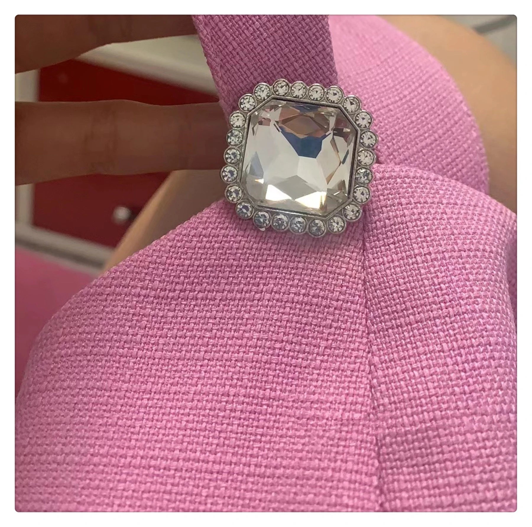 Aoi Summer Y2k Women 2 Piece Suit French Back Bowknot Collar Luxury Diamond Spaghetti Vestidos Sexy Strap Camisole+Shorts Set