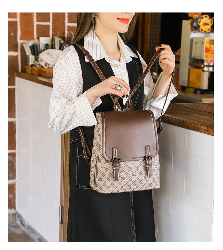 Backpack For Women 2023 New Business Work Shopping Casual Designer Elegant High Capacity Preppy Pu Leather Waterproof Back Bag