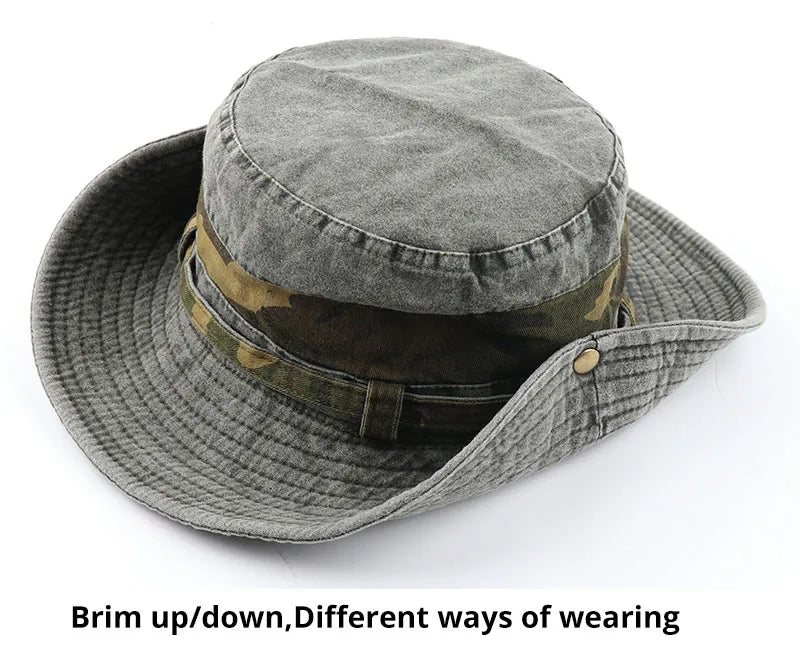 100% Cotton Bucket Hat: Camouflage Fishing Boonie Caps