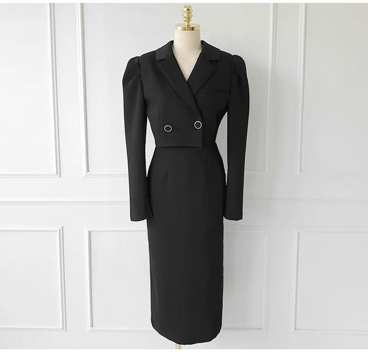 H Han Queen New Fake 2 Pieces Women's Simple Vintage Dress Office Sheath Pencil Dress Elegant Slim Casual Party Vestidos Autumn