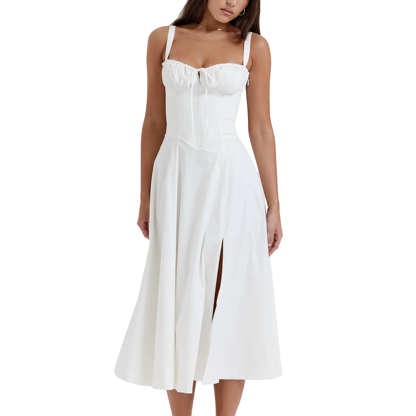 hirigin Floral Print Spaghetti Strap Pleated Midi Dress For Women Summer New Sleeveless Backless A-line Sexy Printed Long Dress