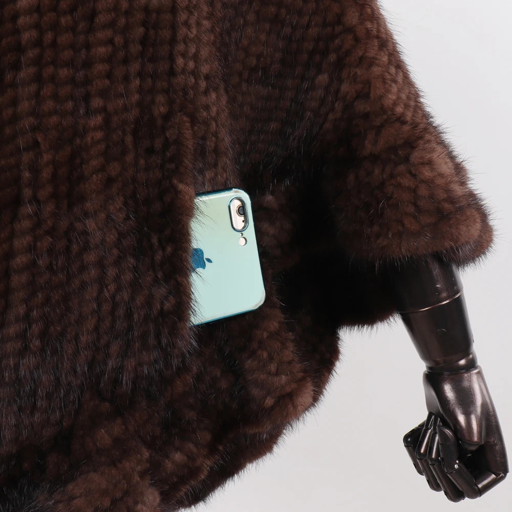 Hot Sale Women Natural Mink Fur Hooded Pashmina Coat 100% Genuine Mink Fur Shawl Lady Luxury Hand Knitted Real Mink Fur Poncho