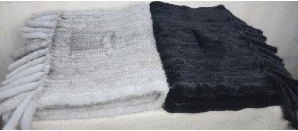 Long Style Winter Real Natural Mink Fur Scarf Lady 100% Natural Real Mink Fur Shawl Women Knitted Real Mink Fur Pashmina Scarves