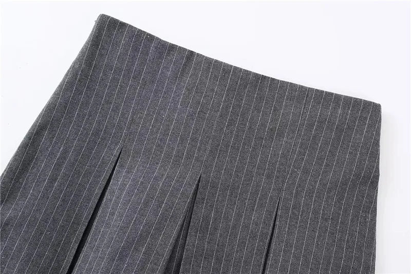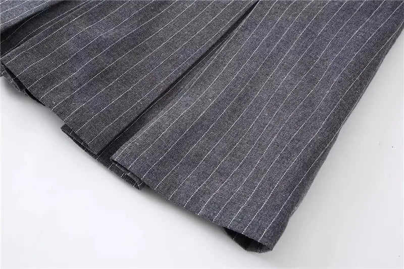 MUJER Women's Shorts Skirts High Waist Pleated Skirt Shorts Women Striped Bermuda Shorts Woman Fashion Casual Mini Shorts Women