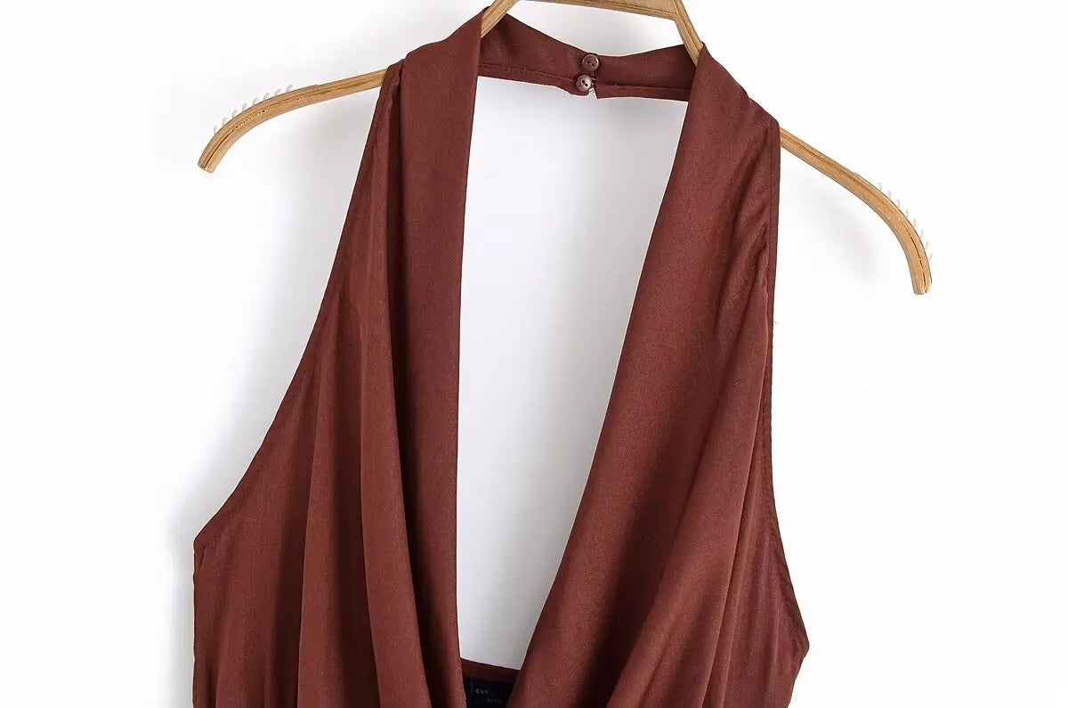 MYST&ZA2025 new summer women's clothing casual fashion comfortable slim sexy inlaid backless midi halter neck short dress
