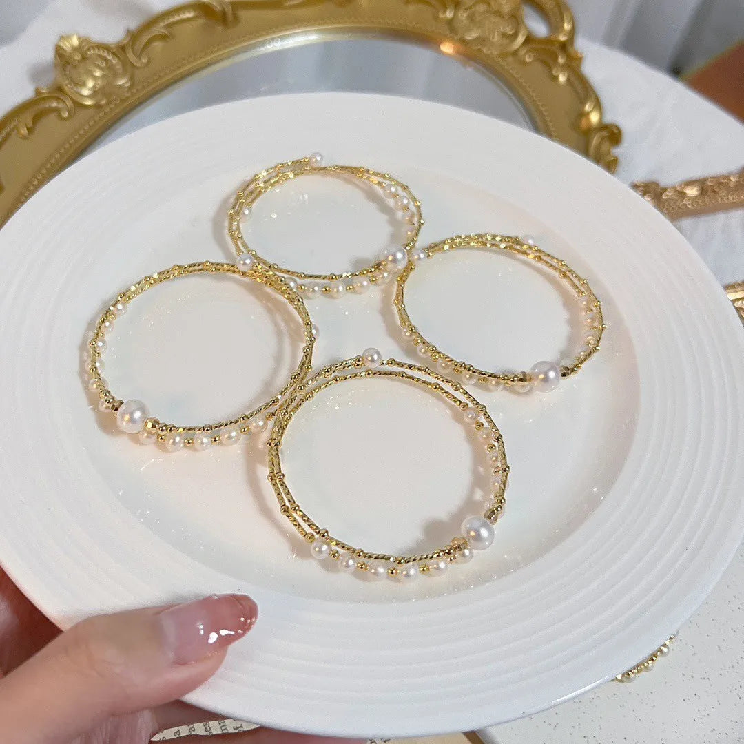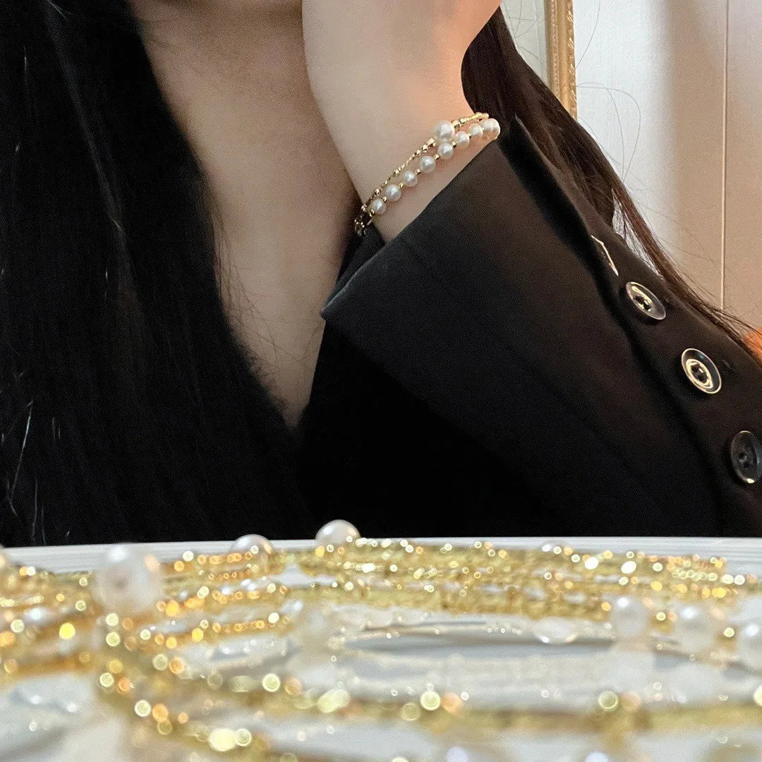 New Arrival 100% Natural Freshwater Pearl 14K Gold Filled Female Double Bangle For Women Jewelry Gifts Never Fade