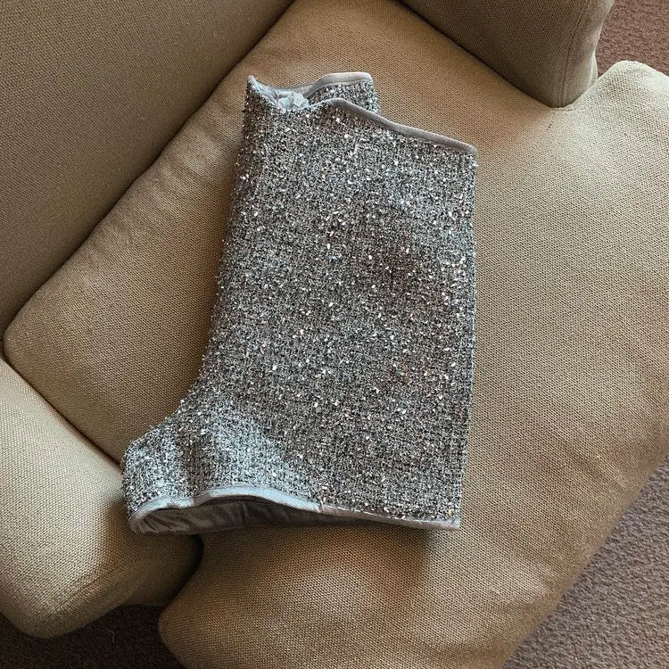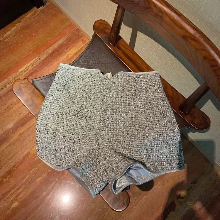 Shorts for Women Sexy High Waist Silver Sequins Short Mujer Y2k Straight Wide Leg Casual Cargo Pantalones Cortos De
