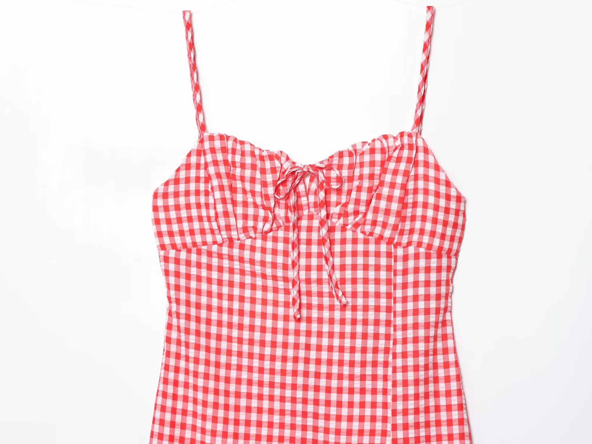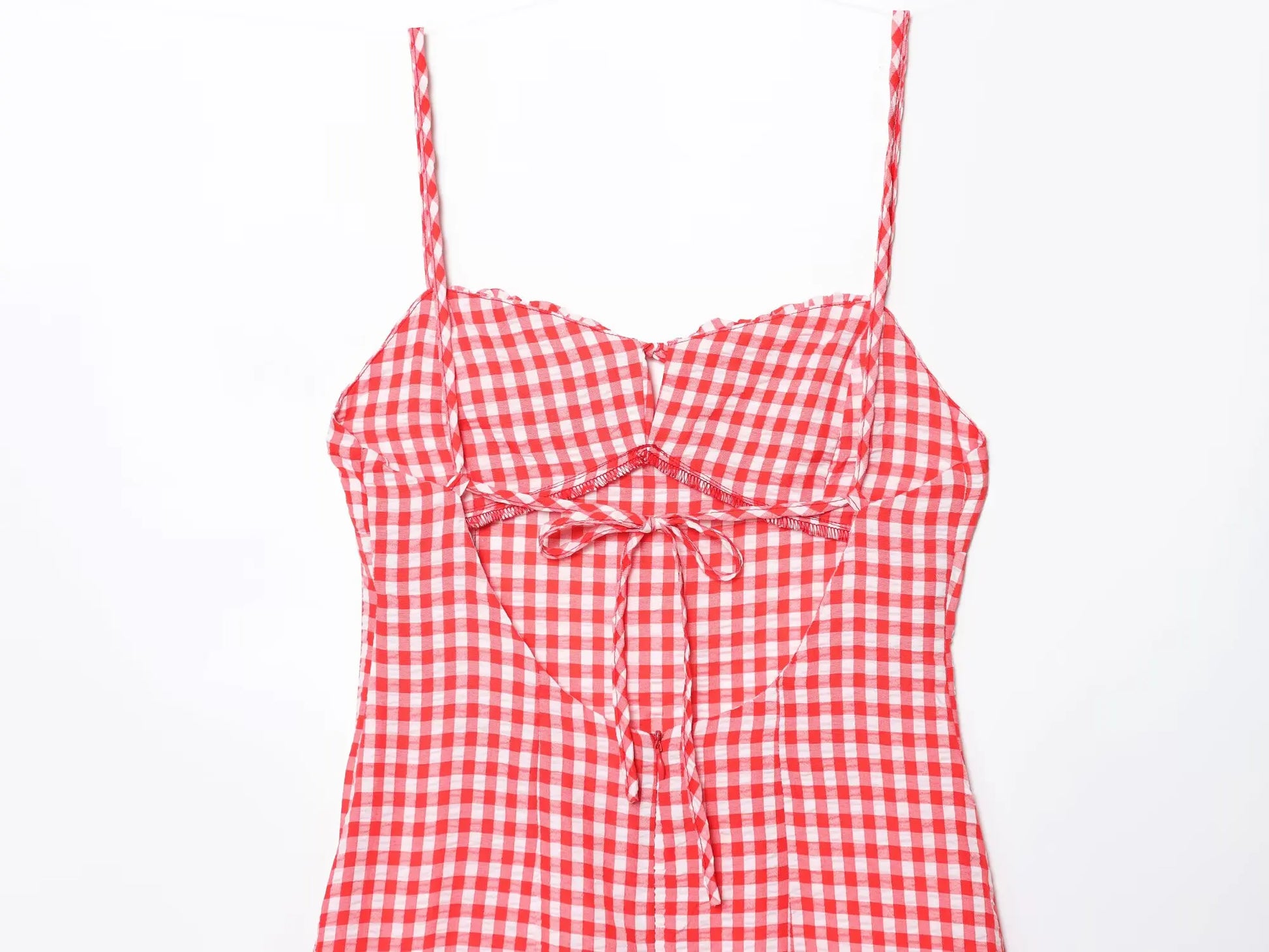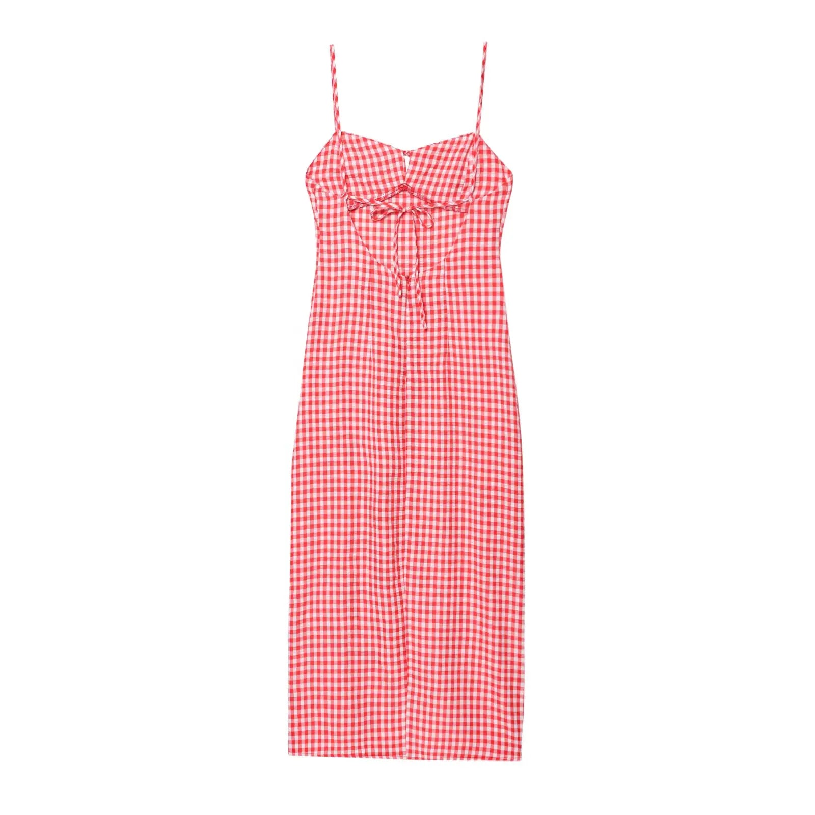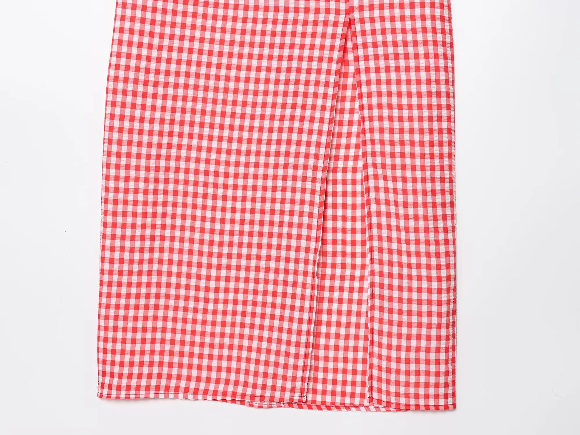 Summer 2025 Slit Backless MIDI Dress Grid Point Print Sexy V-Neck Charming Woman Clothing with High Thigh Split