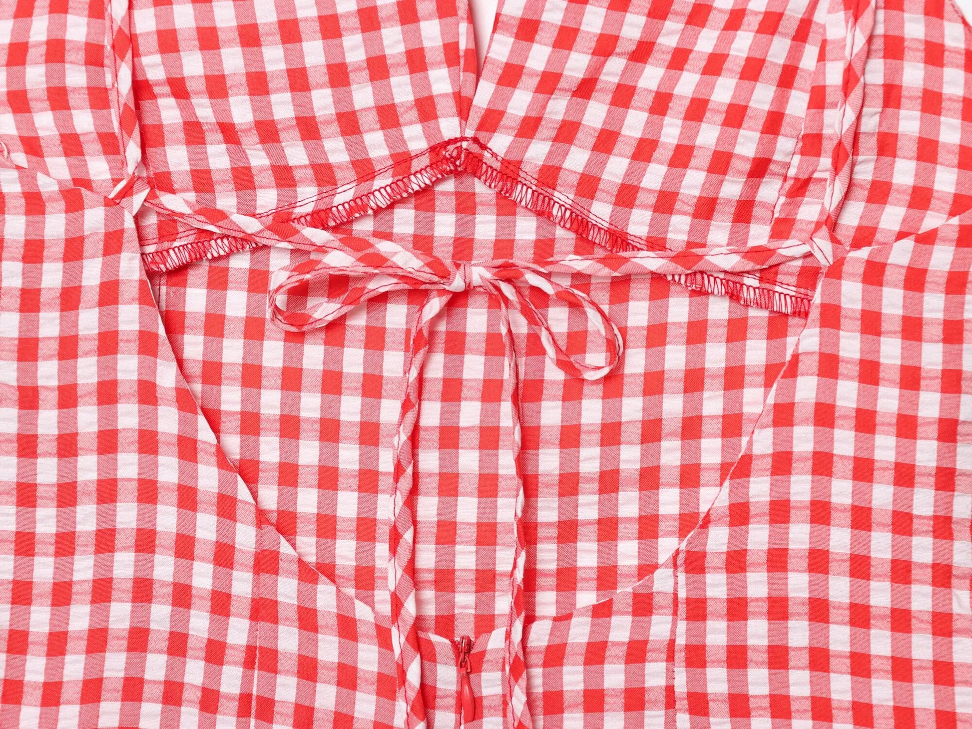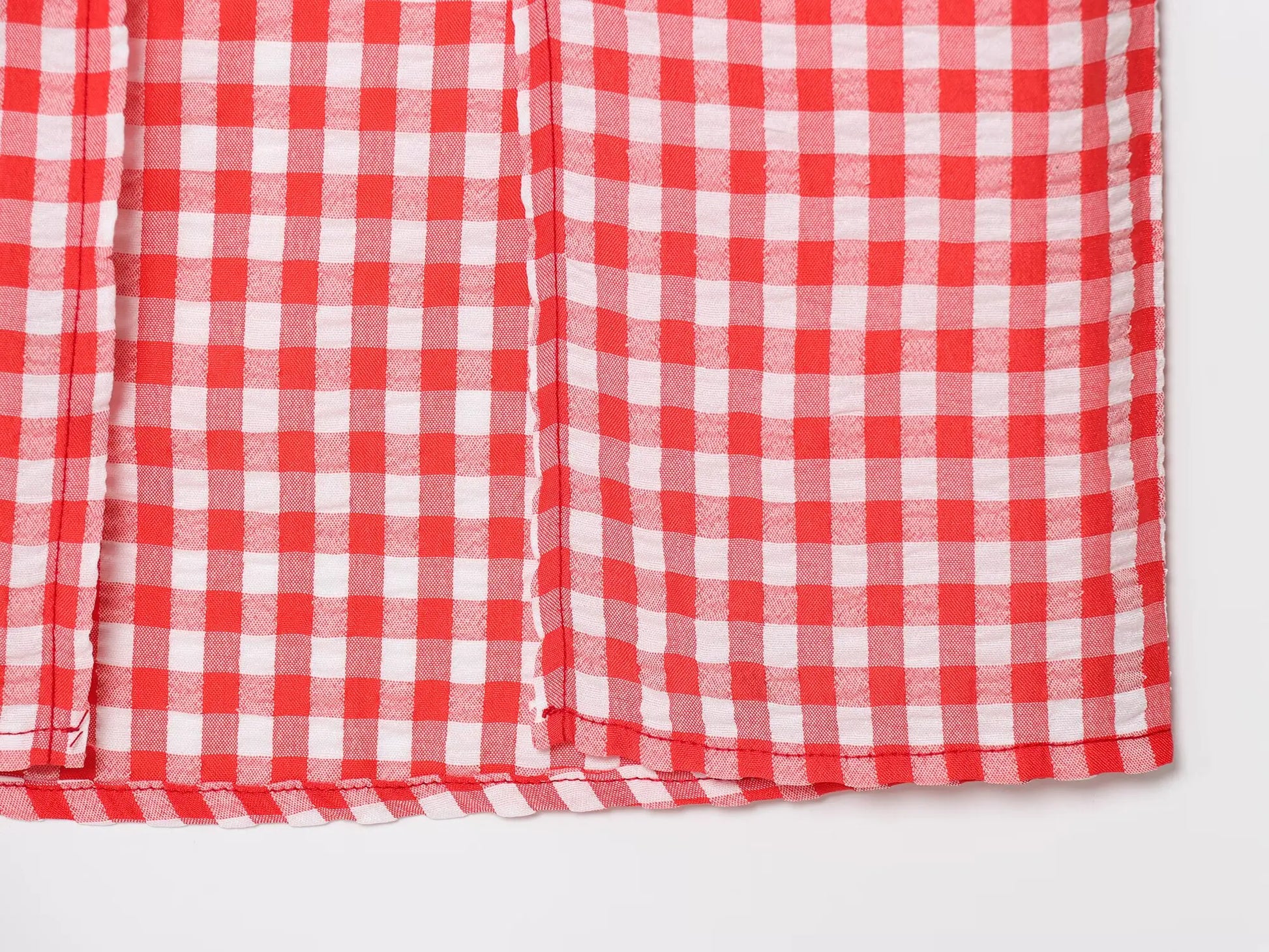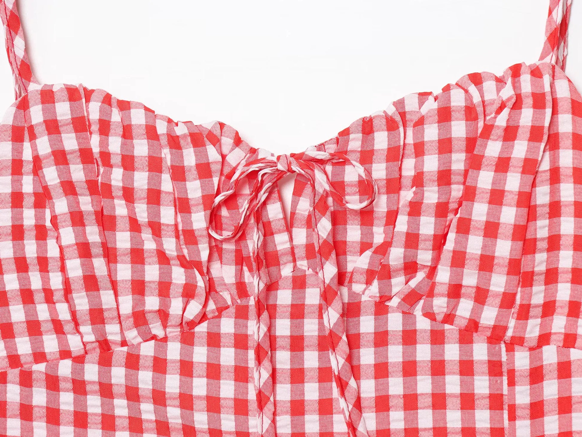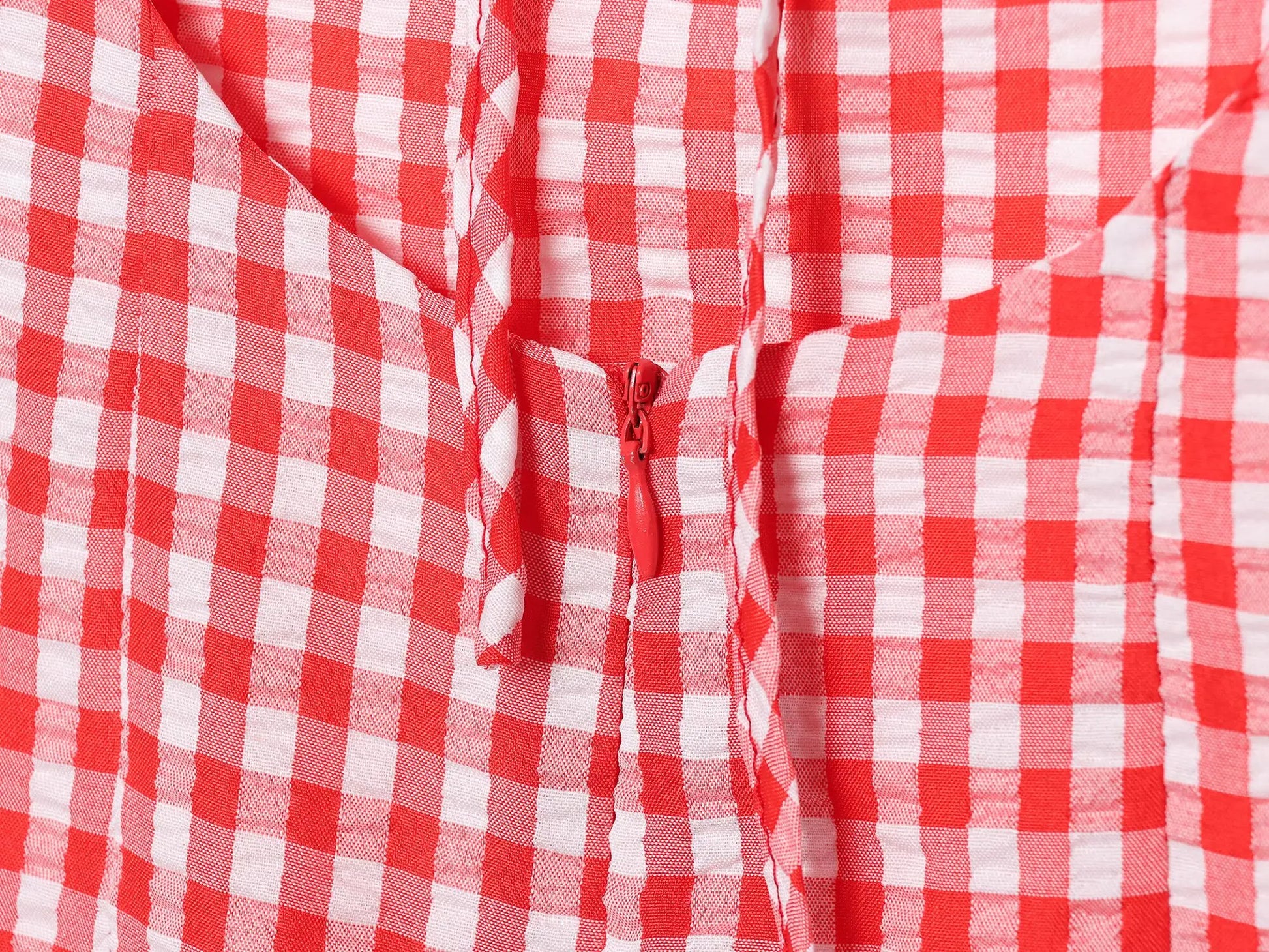 Summer 2025 Slit Backless MIDI Dress Grid Point Print Sexy V-Neck Charming Woman Clothing with High Thigh Split