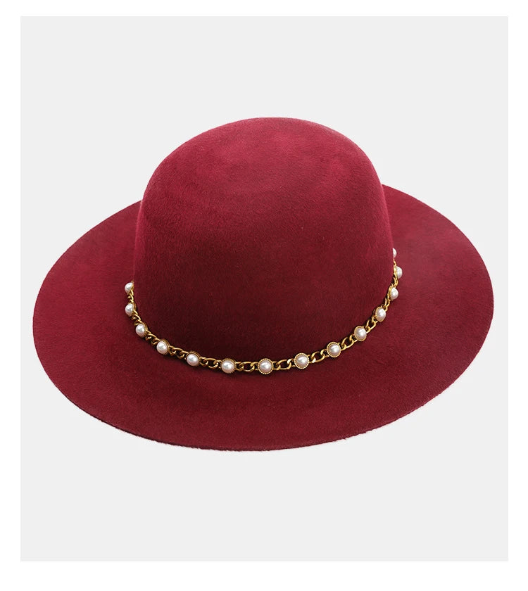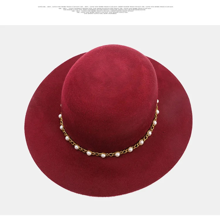 USPOP Autumn Winter Women Wool Fedoras Female Casual Pearl Chain Red Fedora Hat