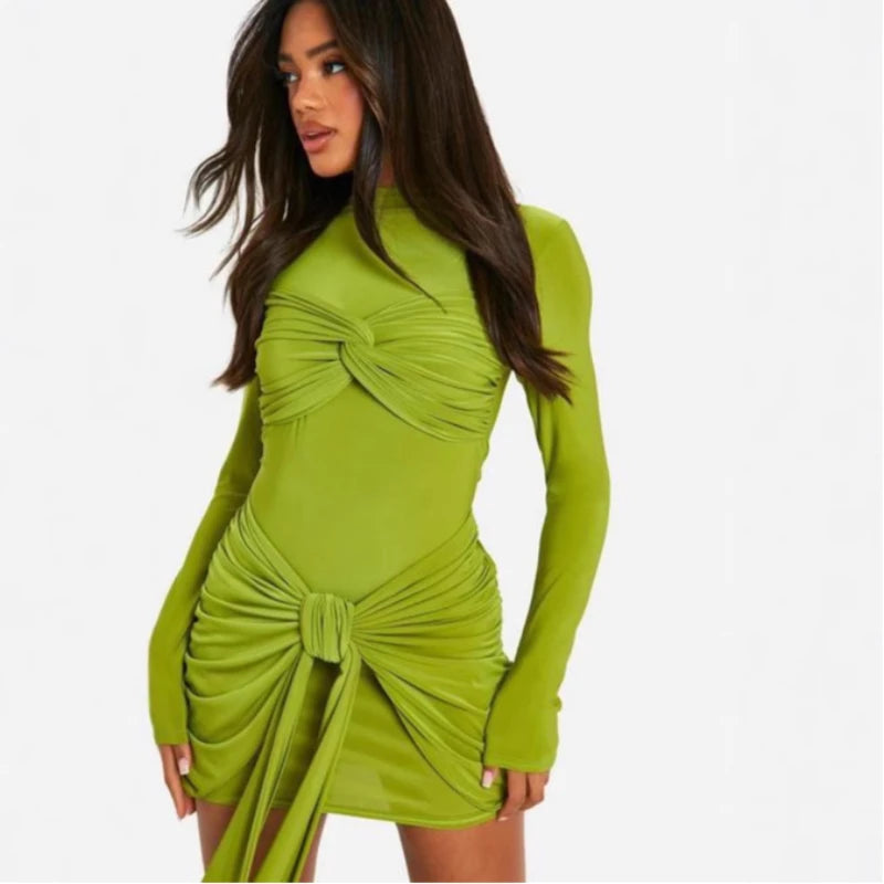 Women's unique design sense unique high-end dress with autumn and winter new pleated knots and waist-hugging sexyshort dress